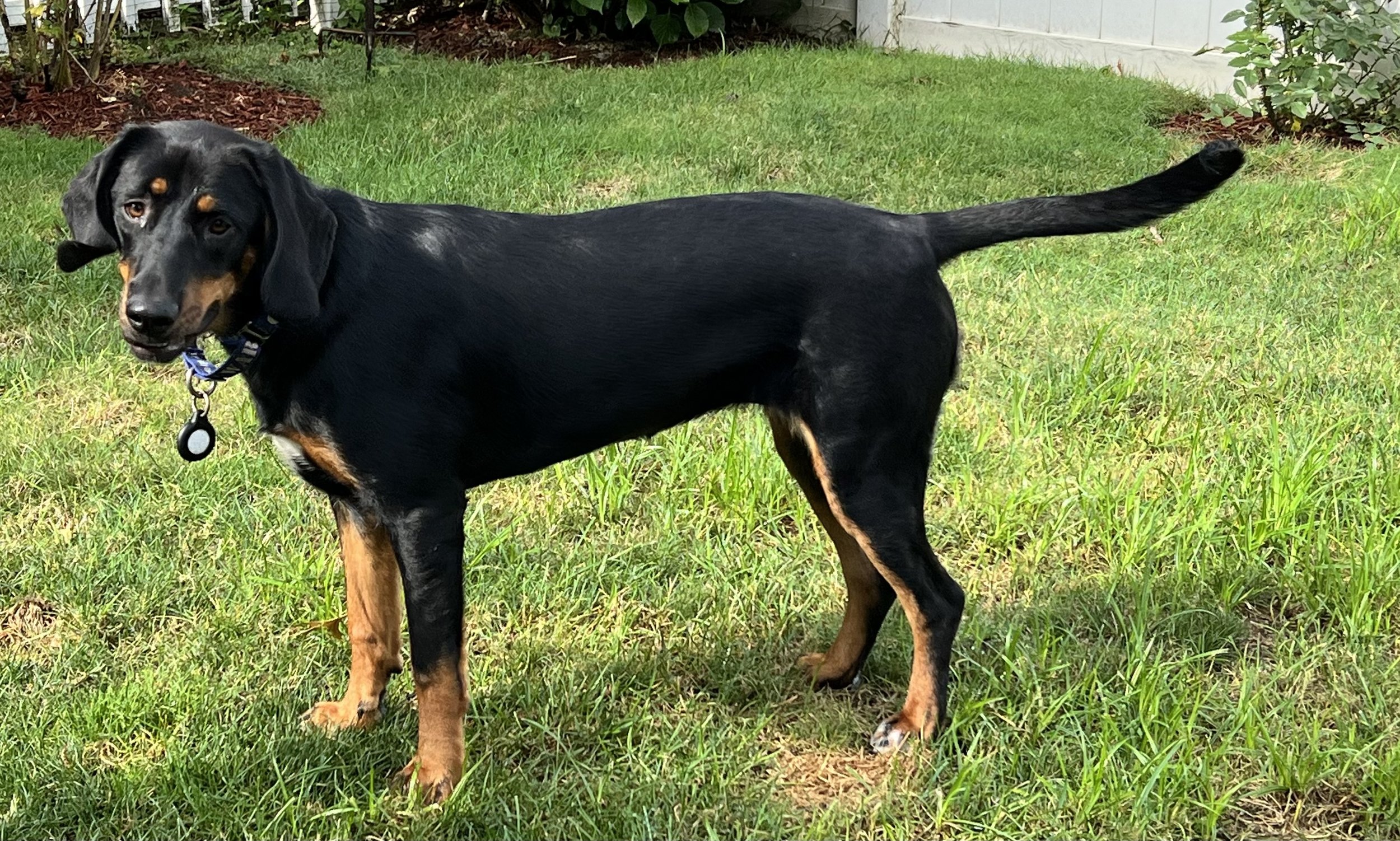 She has been with a foster for the past several months. She is beautiful, smart, housebroken and crate trained. She is well behaved and has learned the sit, stay, down commands and even knows not to jump up on people. She sits for affection and to get her favorite…. chest and neck scratches! She does fine with other dogs and has experience with children 5+ years old.